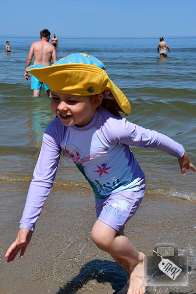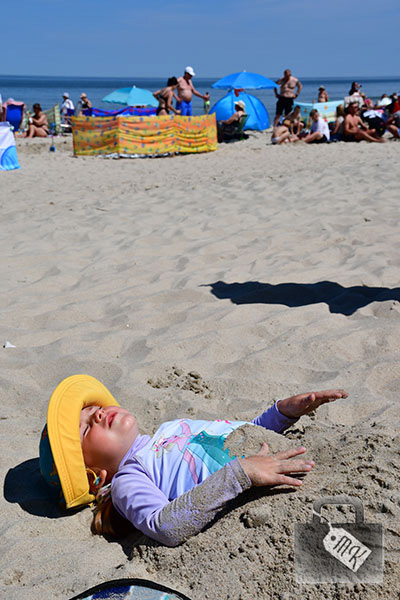 Pierwszego dnia wybraliśmy się na plażę. Plażing nie jest generalnie ulubionym zajęciem ani moim, ani Kaspra, ale Zojka bawiła się świetnie.