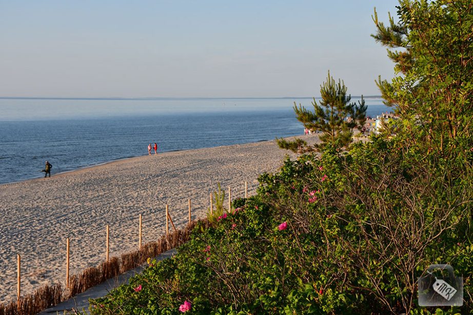 Natomiast wracając promenadą łapaliśmy jeszcze zachwycające widoki na plażę. W niektórych miejscach rozpościerały się naprawdę cudne krajobrazy, idealne połączenie zielonej roślinności i kwiatów, żółtego piasku oraz błękitnej tafli wyjątkowo spokojnego morza. Cudo! Uwielbiam Bałtyk!