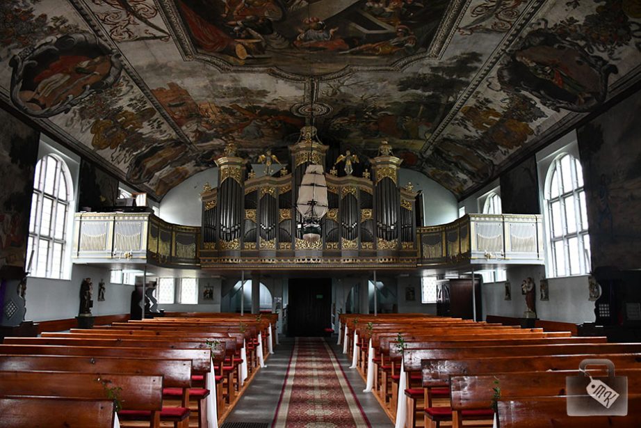 Ja w pierwszej chwili myślałam, że to freski, aczkolwiek od razu było widać, że są jakieś takie nietypowe. Wydaje mi się, że nigdy wcześniej nie spotkałam się z tą techniką i zrobiła na mnie ogromne wrażenie. Dzięki nim kościół prezentuje się naprawdę nadzwyczajnie.