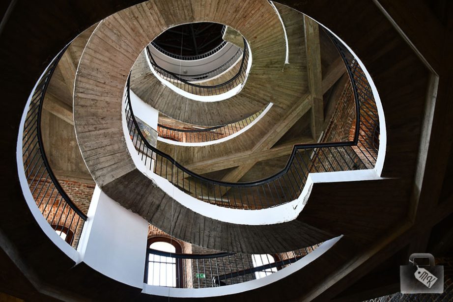 W dalszej kolejności udaliśmy się na sąsiednią wieżę, w której zachwyca klatka schodowa. Oprócz tego, obejrzeliśmy tam ciekawe wystawy, w tym model Wahadła Foucaulta, czyli przyrządu pokazującego ruch obrotowy Ziemi.