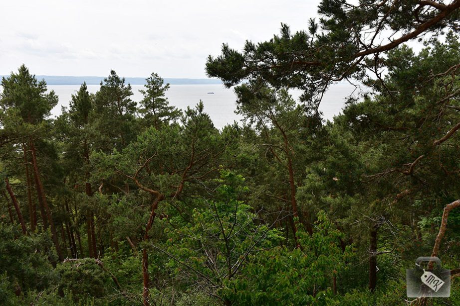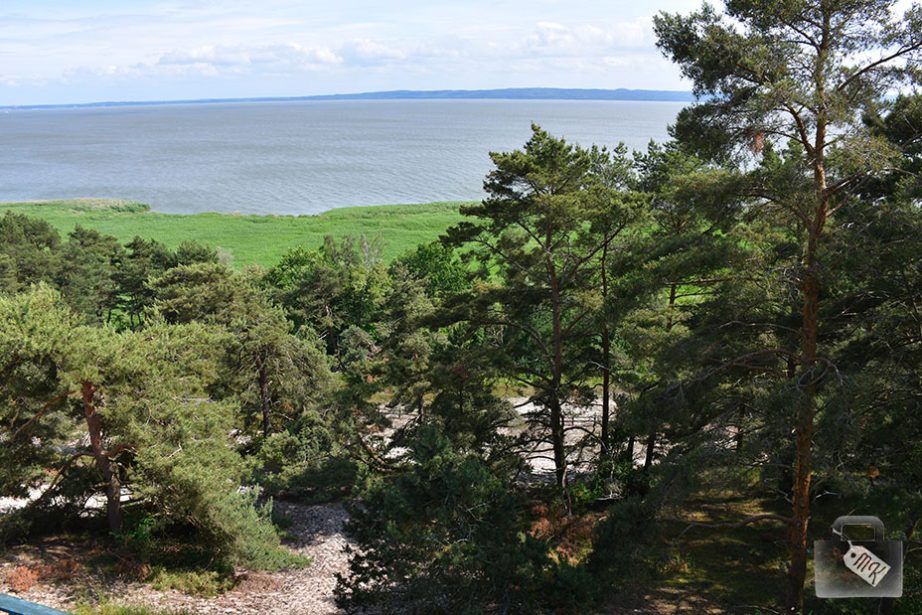 Wspięliśmy się na znajdującą się tam wieżę widokową, aczkolwiek nie mogę powiedzieć, żeby widoki, jakie się nam ukazały, należały do szczególnie zachwycających. Ledwie było widać wodę zza zarośli.