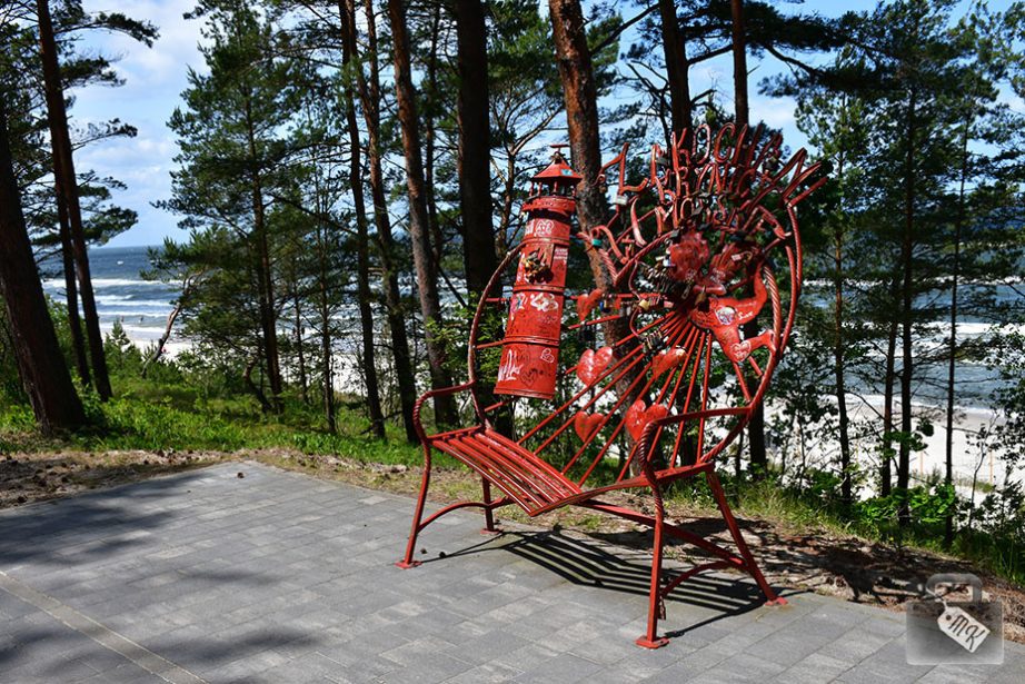Minęliśmy osobliwą ławeczkę z napisem Zakochani W Krynicy Morskiej, a następnie udaliśmy się na plażę przy wejściu 32. Było to kolejne piękne zejście do plaży, z tych co lubię najbardziej. A na plaży prawie żywej duszy, dosłownie pojedyncze osoby.