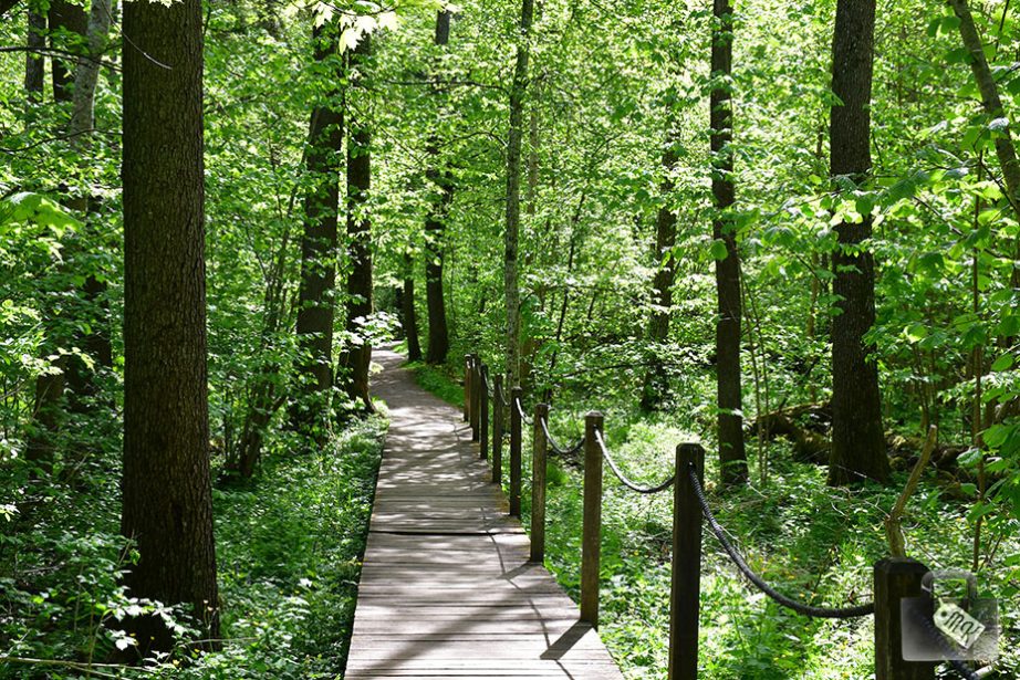 Jest to bardzo przyjemny szlak prowadzący przez puszczę. Jego długość to 2.7 km. i przez dużą część czasu idzie się drewnianą kładką. Jest więc bardzo przystępny dla dzieci i łatwo przejechać po nim wózkiem. Natomiast otaczające nas krajobrazy i odgłosy natury to bajka dla oczu i uszu.