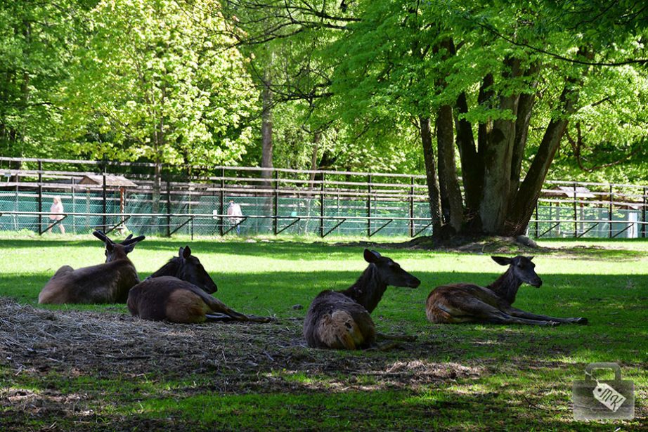 Co do zagrody, to można w niej zobaczyć sporo żubrów, a także inne zwierzęta. Widzieliśmy wygodnie umoszczonego w liściach dzika, jelenie, konie.