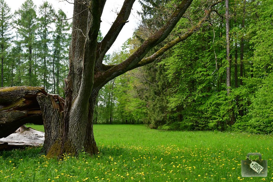 W dalszej kolejności obejrzeliśmy inne zabudowania parku i pochodziliśmy ścieżkami. Do parku wracaliśmy też przy innych okazjach i zeszliśmy chyba wszystkie ścieżki. Widzieliśmy tam bociany i wiele pięknych okazów drzew. Zojka zbierała kwiatki, a my cieszyliśmy się przyrodą. Piękne miejsce.