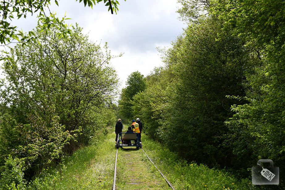 Zrobiłam wcześniej rezerwację przez stronę internetową, ale okazało się, że nie trafiła ona do tych panów. Na szczęście nie było dużo chętnych, więc i tak załapaliśmy się na drezynę. O ile dobrze pamiętam, za jednym razem jedzie ich cztery, a tego dnia, łącznie z naszą, zajętych były tylko trzy.