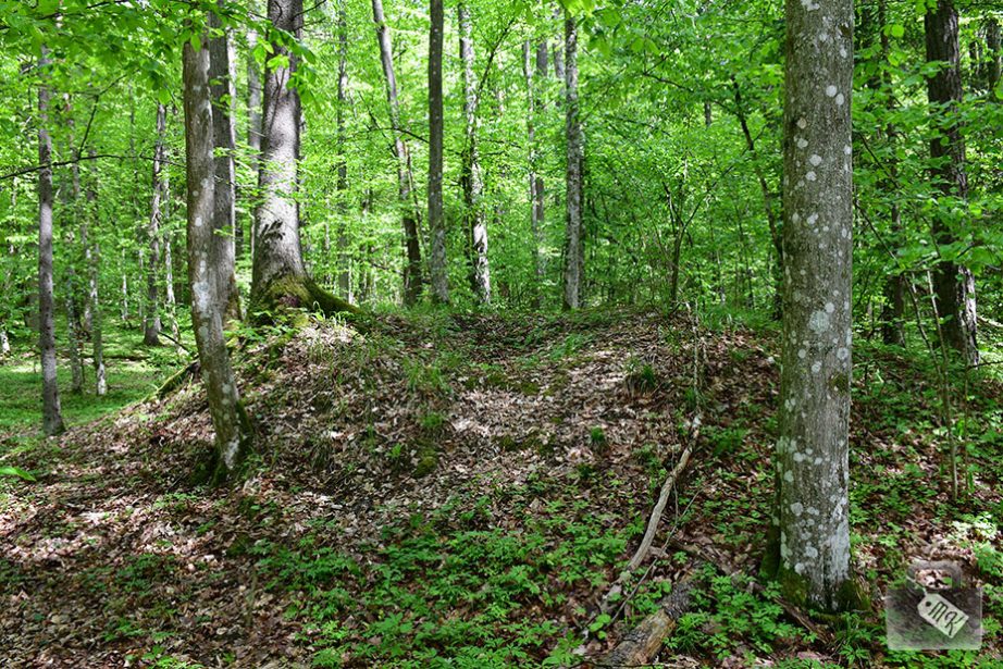 Idąc dalej, natrafiliśmy na wejście do lasu. Byliśmy bardzo blisko granicy z Białorusią, ale ze względu na silny wiatr, nie chcieliśmy się za daleko zapuszczać i trzymaliśmy się ścieżki. Ta doprowadziła nas do kurhanu.