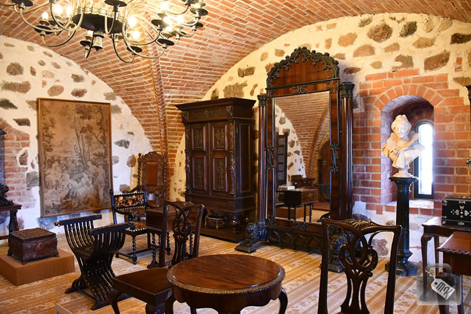 O ile o samym zamku dowiedzieliśmy się niewiele, to wystawy w zamku są bardzo ciekawe, a niektóre sale zostały zaaranżowane, aby pokazać dawne wnętrza. Bardzo mi się to spodobało. Wręcz zachwyciłam się widząc te wszystkie stare meble, żyrandole, a nawet sztukę.