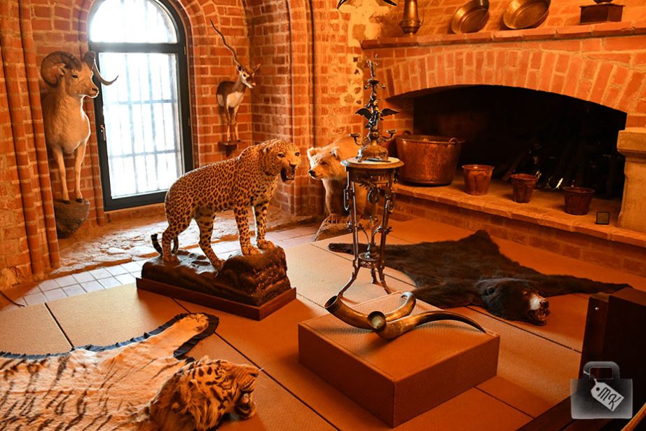Jedno pomieszczenie mieści wypchane zwierzęta i skóry, co jak dla mnie jest makabryczne, ale nie da się ukryć, że ludzie lubowali się kiedyś w takich eksponatach.