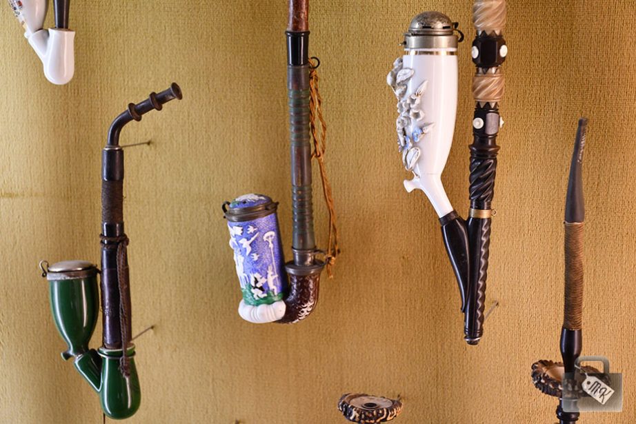 Inne pomieszczenie przeznaczono do zaprezentowania kolekcji fajek o niezwykle wymyślnych kształtach.