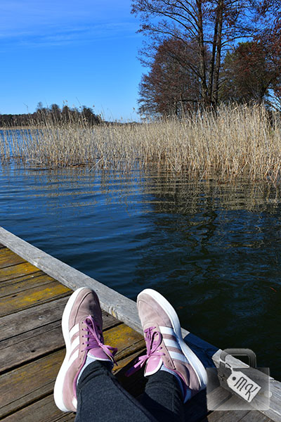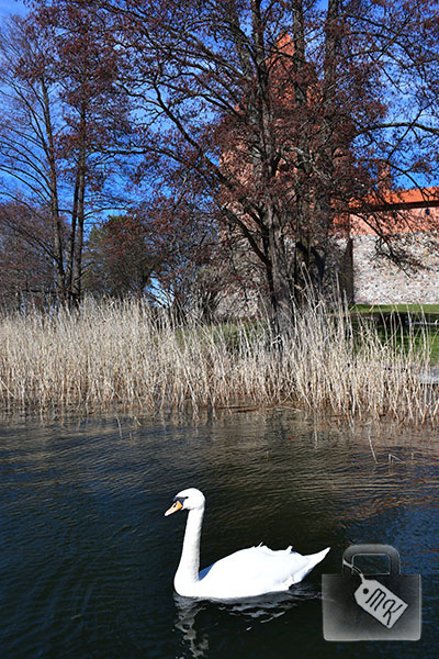 My spędziliśmy trochę czasu na pomoście, podziwiając bryłę zamku, a także spokojną taflę jeziora i pływającego po niej łabędzia.